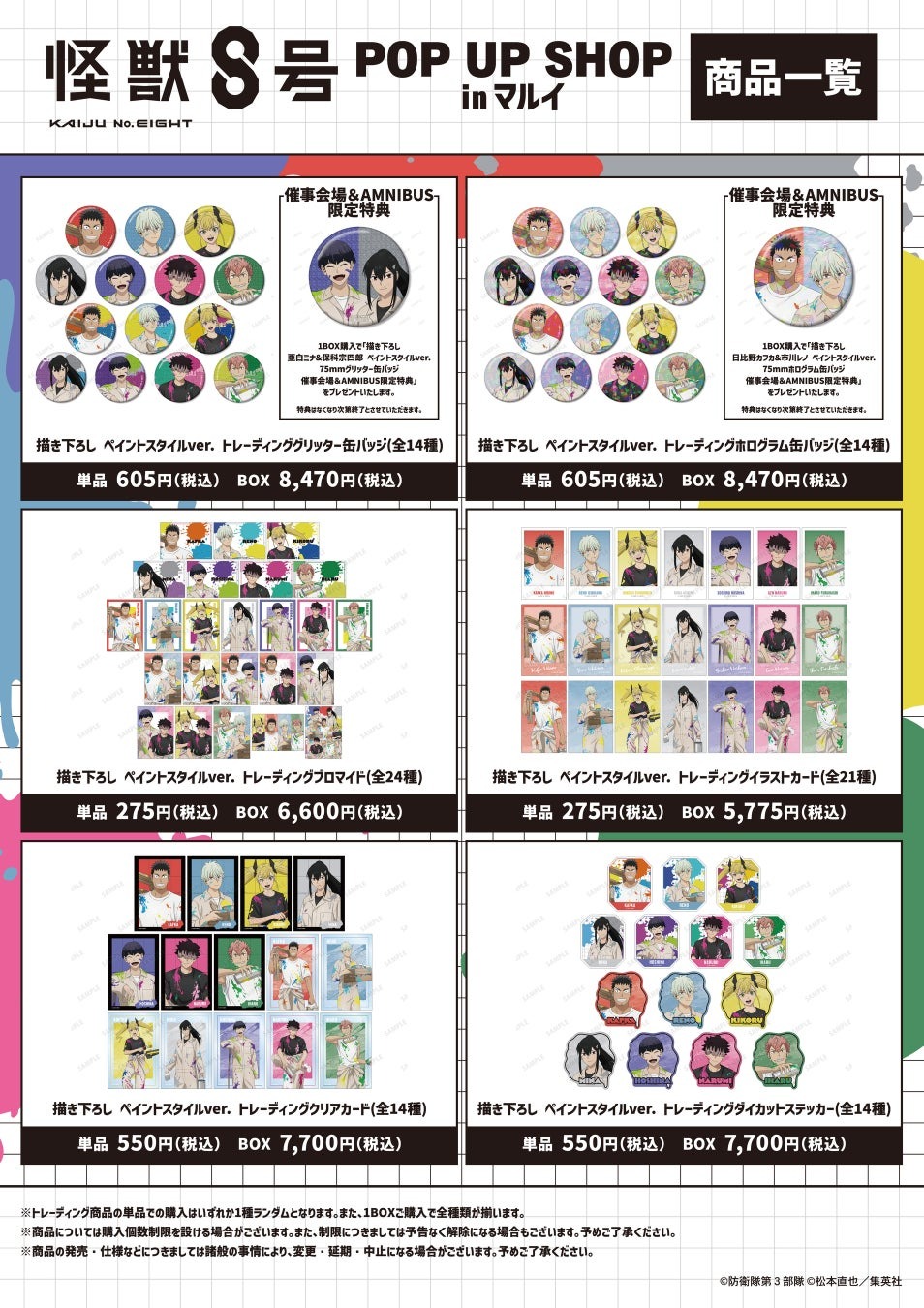 また、POP UP SHOPおよびECサイト「AMNIBUS」で対象BOX商品を購入すると、限定特典グッズがもらえる企画も用意されています。特典はいずれも数量限定で、なくなり次第終了となります。