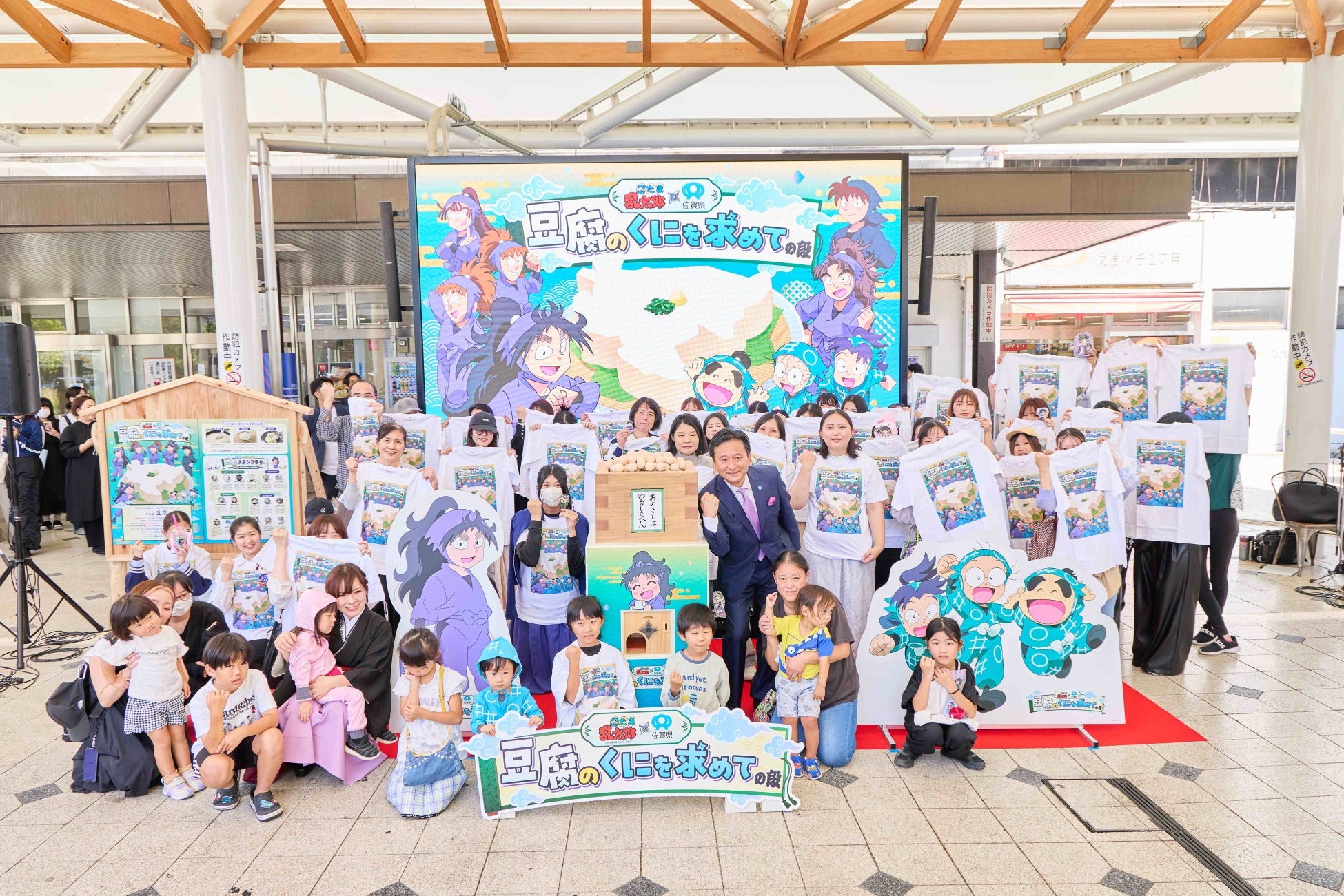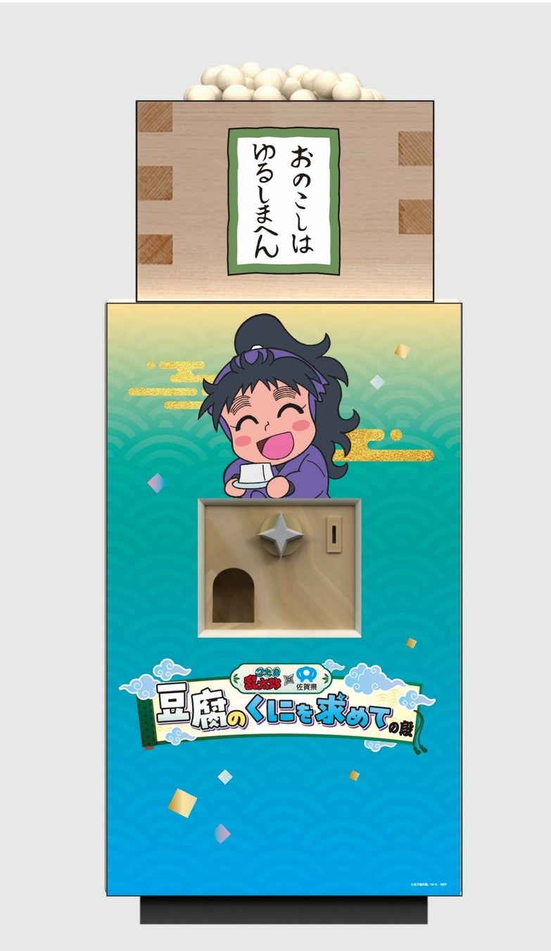 人気アニメ『忍たま』と佐賀県がコラボ、コラボモニュメントの「福きたる大豆くじ」の除幕式が10月20日に開催